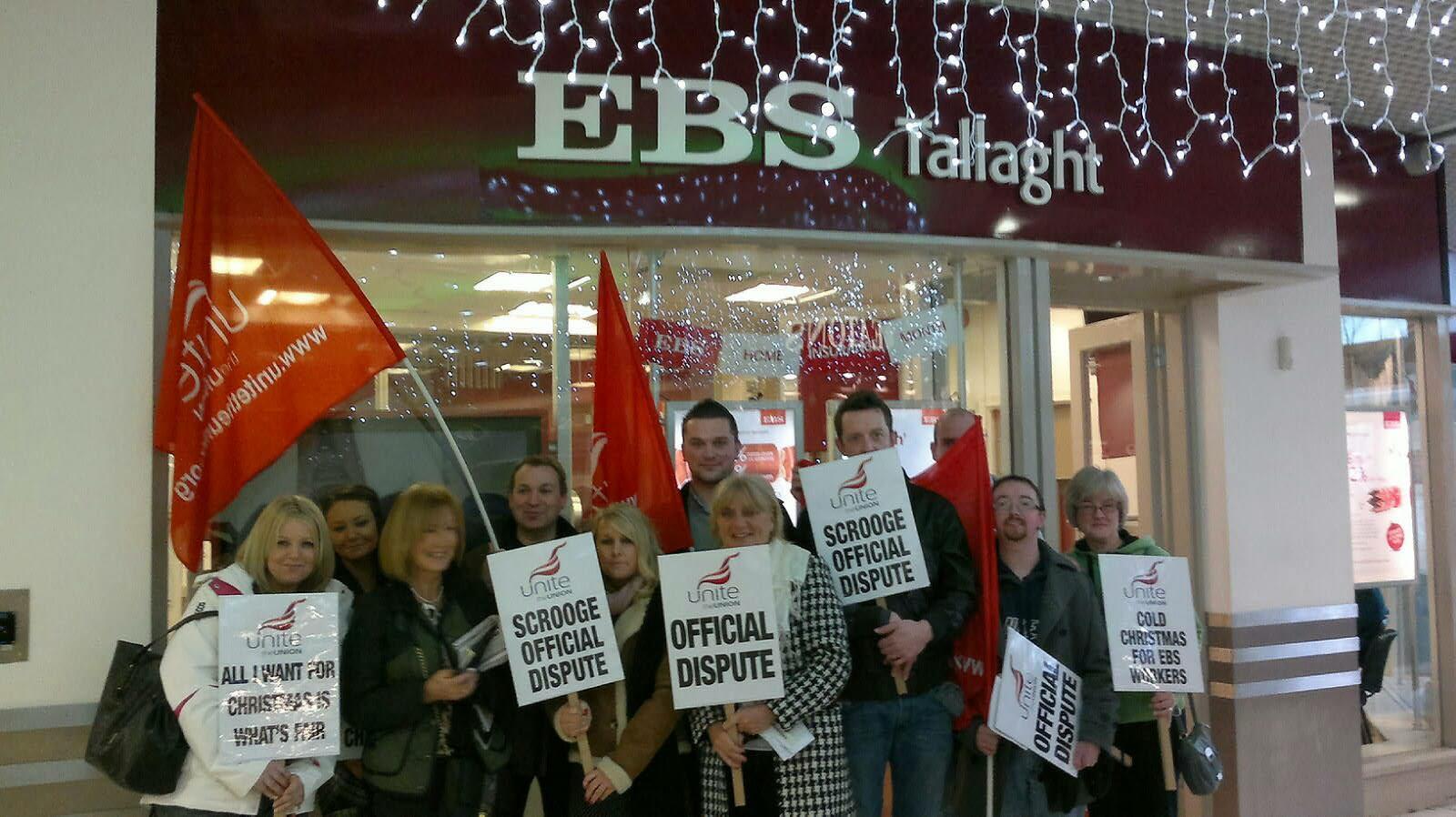 EBS employees have suffered a retrospective pay cut of approximately 8 per cent. This relates to the payment of the so-called 13th month, a contractual element of annual pay which was discontinued in 2011. In its recommendation, the Labour Court held that this payment comprised a bonus and as such was prohibited following the incorporation of EBS into AIB for the duration of the placing agreement. However, the Court also held that this prohibition did not apply to the 2011 payment, and recommended that the company pay the two weeks still owed for that year. This the EBS/AIB management has failed to do.