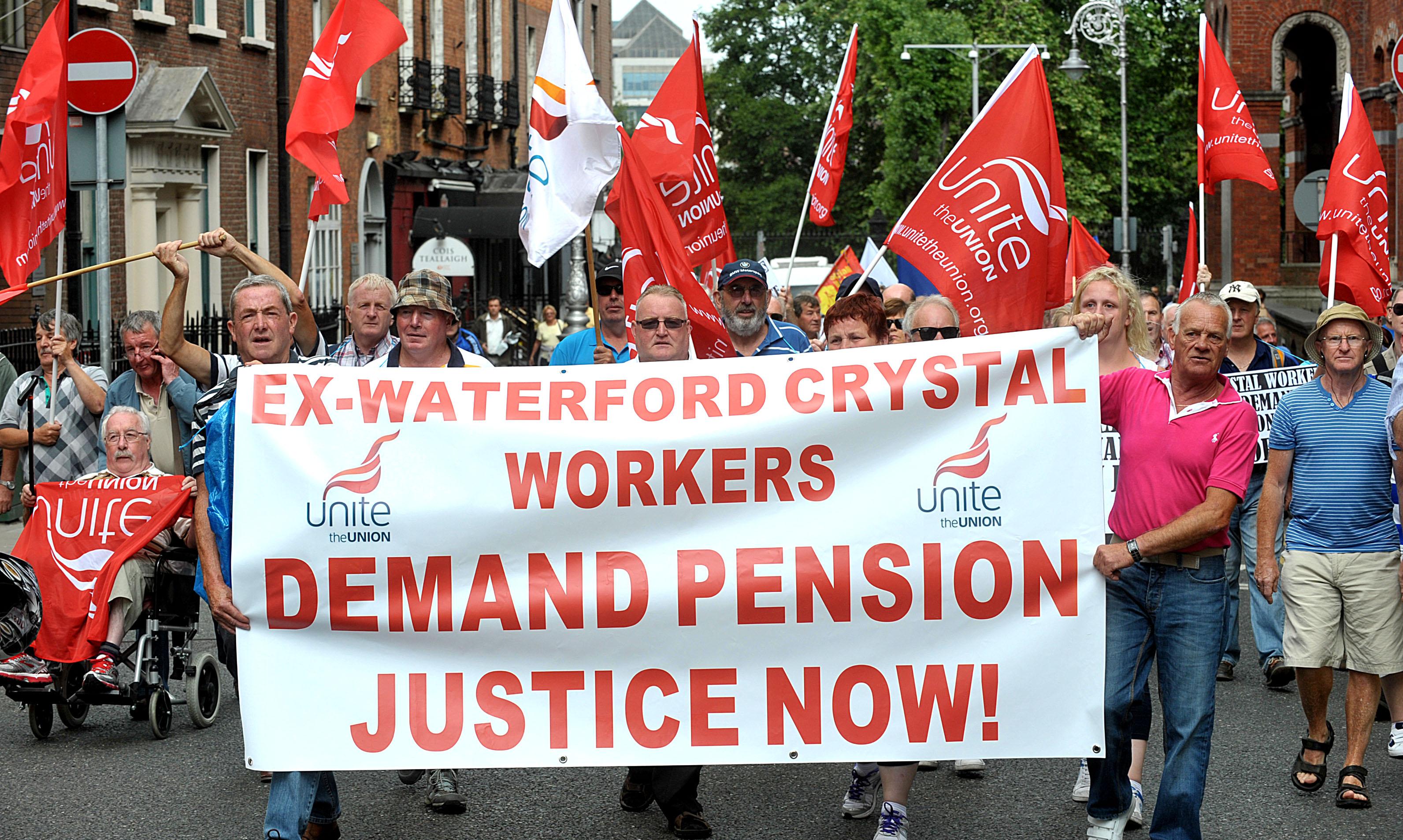 “Of more immediate concern is the situation of former Waterford Crystal employees. I would like to stress that Unite, as the union representing former Waterford Crystal workers, has received no approach from Minister Burton’s Department as of the time of issue: as far as we are concerned, the case is continuing to make its way through the Irish courts following April’s decision by the ECJ that the Irish State has failed to protect their pension entitlements.