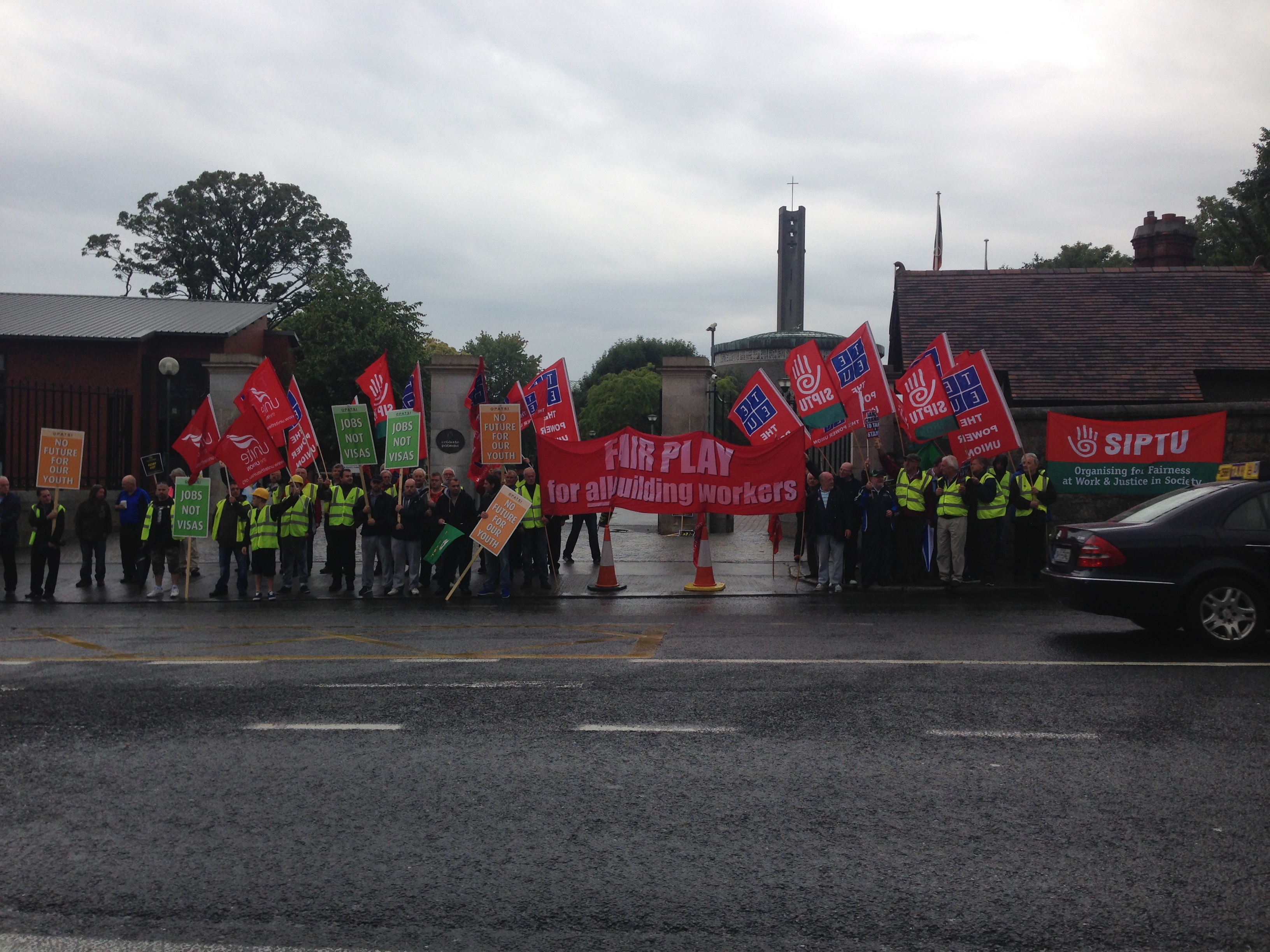 The Construction Group of Unions – which includes SIPTU, OPATSI, UCATT, BATU and the TEEU, as well as Unite – is protesting against what it terms a ‘race to the bottom’ on school building projects.