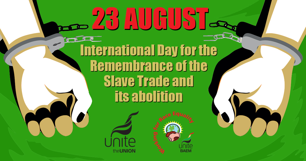Today, 23 August, is the International Day for Remembrance of the Slave Trade and its Abolition. Pointing out that the campaign to abolish chattel slavery was driven by formerly enslaved persons such as Oloudah Equiano and Frederick Douglass, who inspired activists from Belfast to Cork to create one of the first civil society campaigns in Ireland, Unite today said that the same determination and organisation are needed today to counter messages of hate and division.