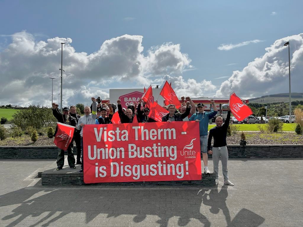 Unite general secretary Sharon Graham said: “The Vista Therm workers are at the cutting edge of the fight to improve working conditions for foreign-national workers in Northern Ireland. The fact that this employer has engaged in brutal union-busting tactics will be challenged and defeated.