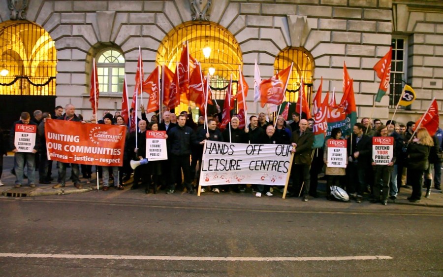 Belfast unions protest Leisure Centre privatization 3 March 2014