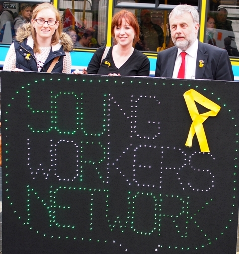 SIPTU’s Jack O’Connor with members of the Young Workers’ Network at vigil for the Cuban 5
