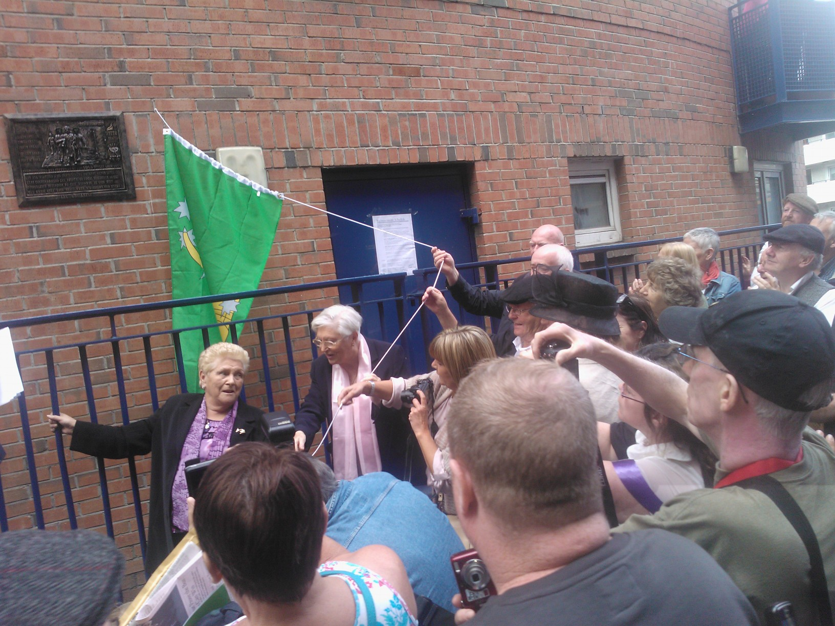 Ellen (Nellie) Matthews, grand-daughter of John Byrne who was battoned by police on Butt Bridge, unveiling the plaque